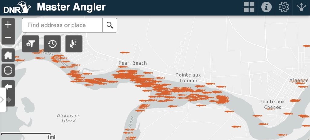 The North Channel of the St. Clair River, Michigan  has long been identified as a primary area to fish for sturgeon. The DNR has published master angler sturgeon catches in the St. Clair River.